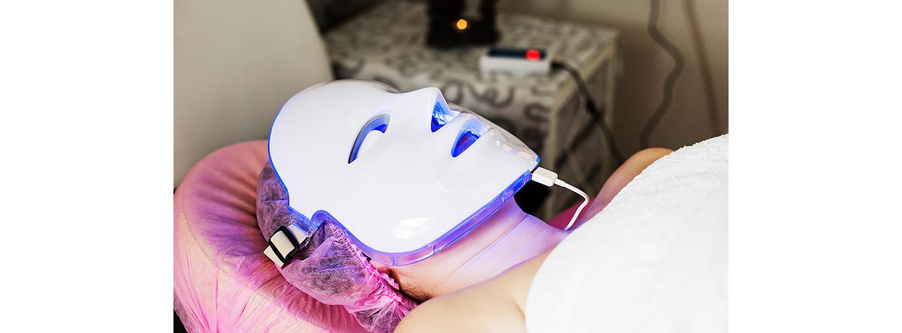 Máscara de luz LED AZUL, indicada para las pieles con tendencia acneica. Actúa penetrando en los poros y eliminando las bacterias que provocan la aparición del acné. También reduce los poros dilatados.